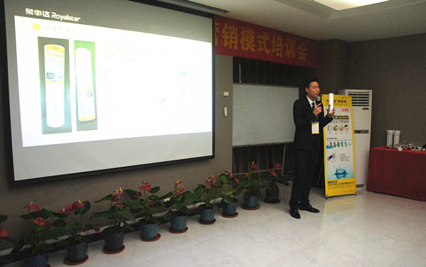 榮事達著力打造產品力,推出2016系列暢銷新品,助力客戶致勝終端。在此次暢銷產品培訓講座上,開發部董部長為客戶解析了暢銷新品賣點,R8櫥下智能純水機以黑、金為主色調,尊貴大氣,產品采用LED智能顯示、自動化沖洗功能、防漏水技術、以及新型韓式龍頭,亮點頗多;箱體LED純水機采用“無壓力罐”構造、“一體式龍頭”設計,櫥上櫥下可隨心安置;速熱飲水機超薄小巧、三秒即熱,并能實現多檔水溫和水量調節,方便、實用、美觀。會上,董部長將榮事達凈水機所采用的膜、壓力桶、泵、龍頭等配件與其他廠家的產品進行比較,從產品質量、安裝拆卸便攜性、用戶使用體驗等多個方面突出了榮事達凈水機的質量和性能優勢。